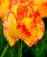 Тюльпан Карибиан Пэррот, относящийся к группе попугайных растений, не зря получил такое название. Его лепестки, имеющие необычную для тюльпанов форму, и вправду экзотичны, как сами Карибы. Окрас огромных бутонов напоминает песчаный пляж, жаркое солнце и легкое дуновение ветерка. В лепестках Карибиан Пэррот соединились все теплые тона и оттенки: и желтые, и красные, и оранжевые, и даже светло-зеленые. Глядя на тюльпаны этого сорта, так и хочется махнуть на Карибы.