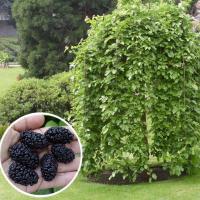 Это уникальное дерево может прожить на одном месте до 200-500 лет! Плоды – съедобные костянки, темно-фиолетового, почти черного цвета, мясистые (по 10 гр весом). Кисло-сладкие с приятным ароматом. Плоды плакучего тутовника очень полезны для здоровья, содержат витамины и микроэлементы. Также дерево подходит для декоративных функций.