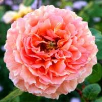 Цветки Абрахам Дерби имеют классическую форму старинной розы, чашевидную форму, медно-абрикосового цвета в центре, к краю цветка лепестки становятся розовыми. Аромат очень сильный. Данный сорт парковой розы образует густой округлой формы куст, во время цветения весь покрытый цветками. Листва у растения обильная иблестящая. Для розы с такими крупными цветками, волны цветения повторяютсярегулярно. Благодаря своему цвету и размерам является идеальной розой для центра клумбы.