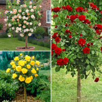 В состав комплекта входят Роза штамбовая Кэтрин, Роза штамбовая Артур Белл и Роза штамбовая Ингрид Бергманн.